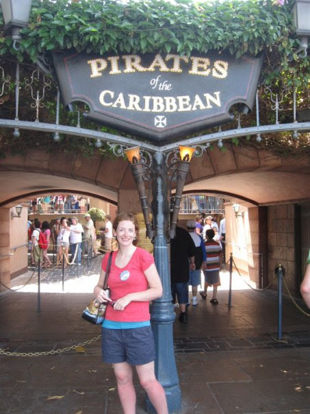 Our first stop was to get something to eat in Downtown Disney. When I told Lea about the button, she told me to put it on, that people would wish you a happy birthday all day long. And they did, starting with the chef who greeted us. I ordered a yummy turkey sandwich and a pirate punch with a light-up Tinkerbelle attached. I noticed the Mickey shaped confetti that a girl by our table was sweeping up; we asked her about it. She said it comes from the parade, every night (and it glows in the dark) and every morning. Lea noted that that would suck. The girl was noncommittal, as I'm sure the Disney employee handbook disallows you to admit that any job in the park sucks. We finished lunch (Lea treated me), and then headed for Adventureland.